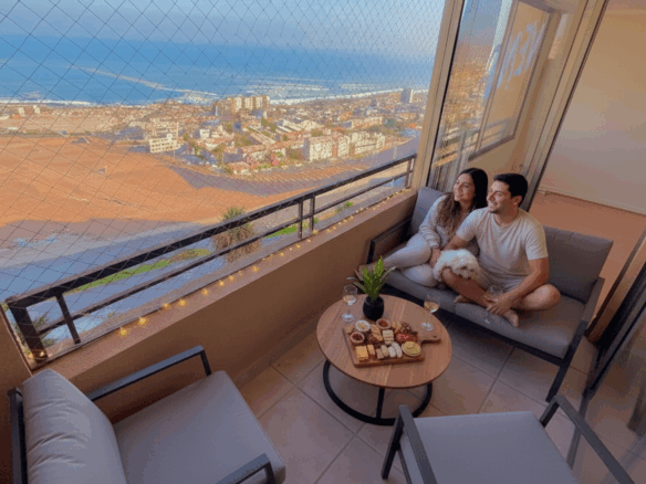 Sin lugar a dudas uno de los mejores lugares para estar comodo, es en su terraza con vista al mar, donde podrás disfrutar sunset de Antofagasta.